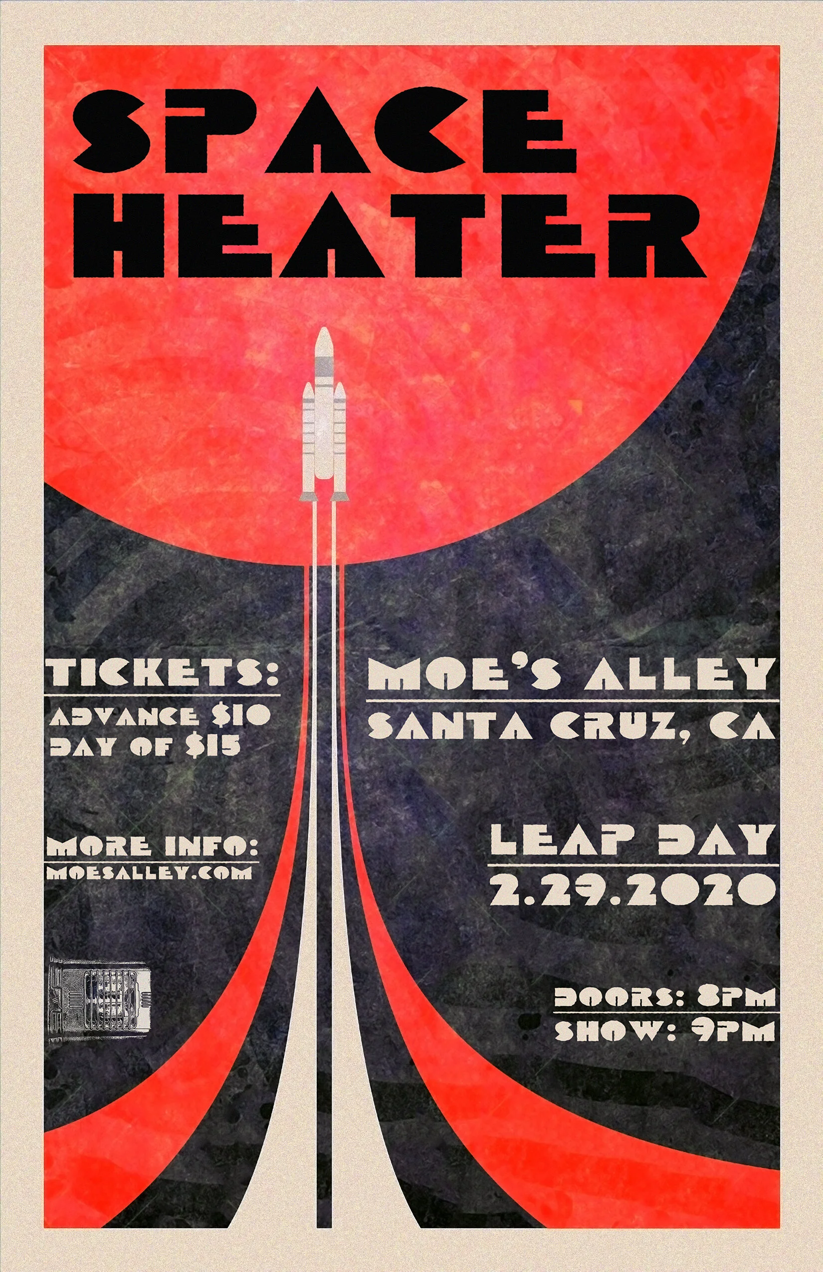 Space Heater is a Santa Cruz-based band with one foot planted firmly in the foundations of funk, while the other foot prefers a galaxy far, far away. With an expanding roster of sultry originals and the occasional cover song, you won't have much choice but to shake that thang....